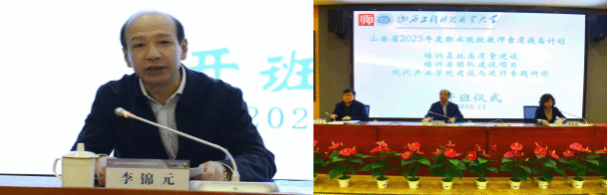 2025年12月22日上午,山西省2025年职业院校教师素质提高计划“培训基地高质量建设”“培训者团队建设”“现代产业学院建设与运行专题研修”等 3 个项目在我校顺利开班。山西工程科技职业大学党委委员、副校长李锦元,交通工程学院院长齐秀廷,继续教育与培训学院党委书记张丽燕共同出席开班仪式。