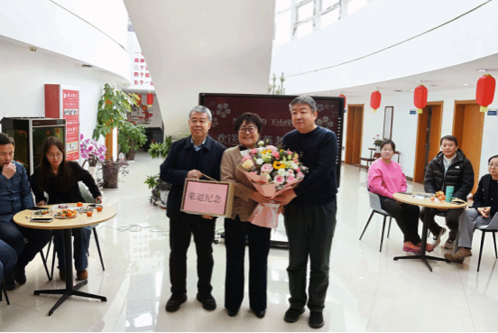 学院党委副书记王毅民、副院长曹建业代表学院为郝晓燕老师送上鲜花和荣退纪念,传递浓浓的敬意和美好的祝福。全体教职工共同合唱《我只在乎你》,用歌声传递祝福,最后全员合影留念,定格温馨瞬间。